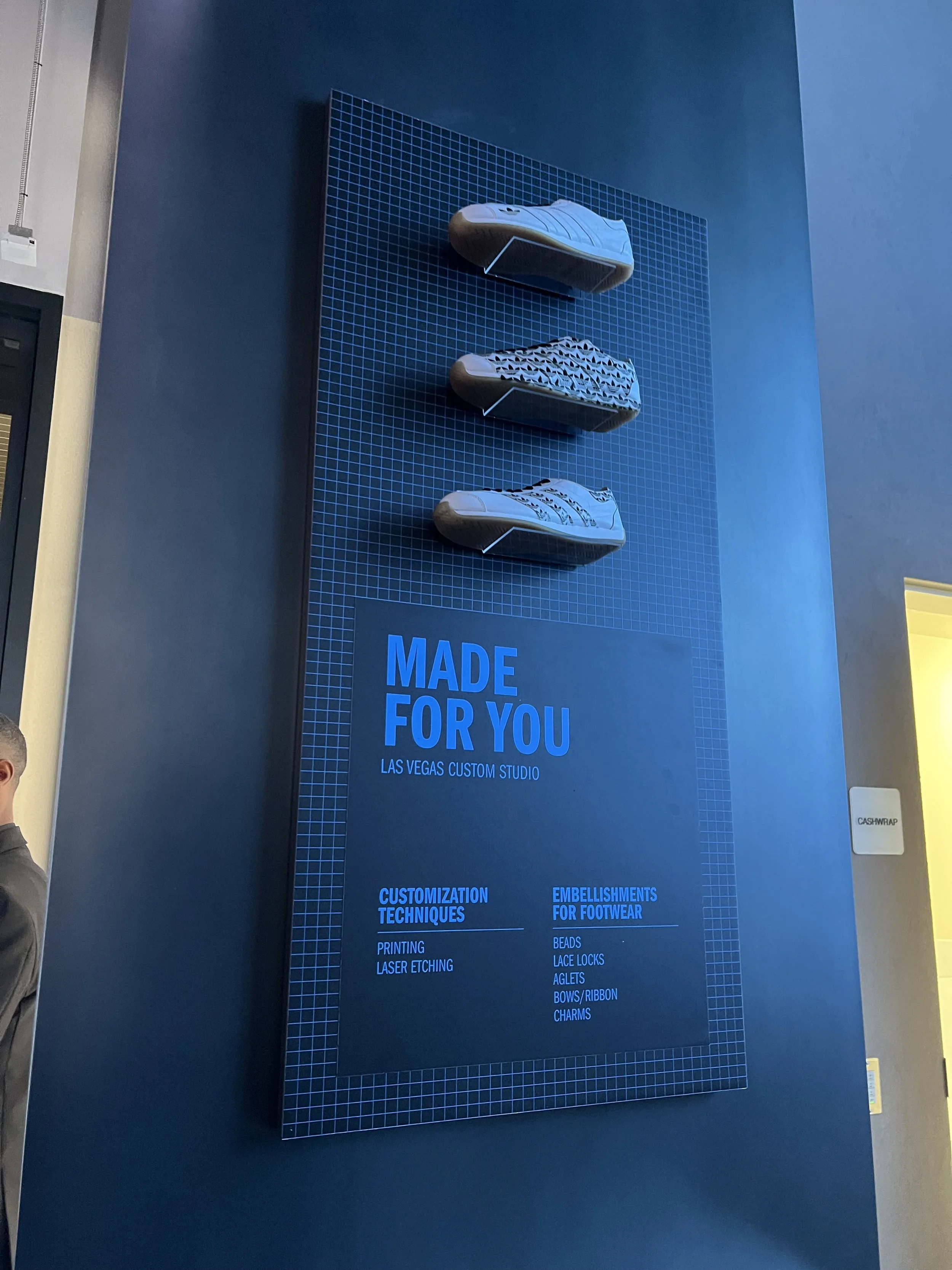 For the new adidas Las Vegas store launch on Las Vegas Blvd, our team was tasked with creating a retail toolkit to elevate the in store experience — one that felt both authentically adidas and uniquely Vegas. As the city evolves into a global sports hub, the new Home of Sport concept needed to balance performance and lifestyle across two distinct floors: sport by day on the first floor, Trefoil lifestyle by night on the second. Whether you’re training in the morning or heading out on a Friday night, the store channels that dual energy — performance below, lifestyle above.
